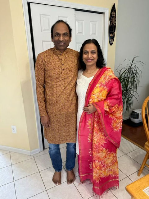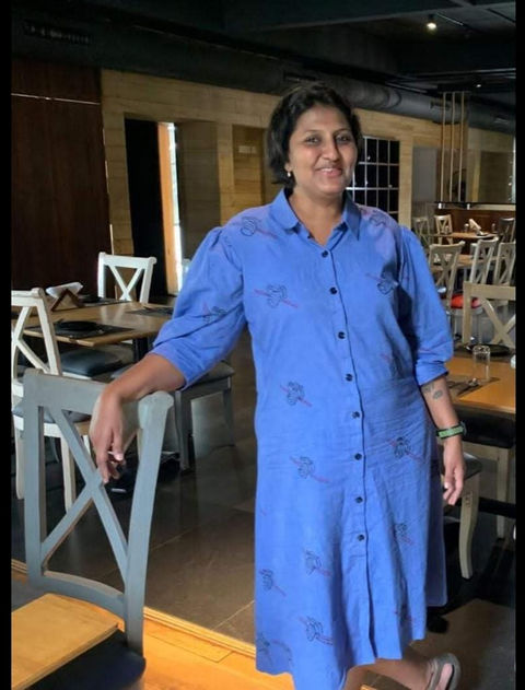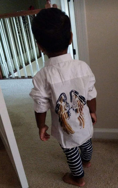 Wearing customised apparel by Qalam Batik